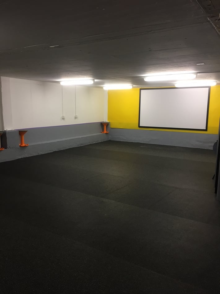 Die Hundehalle bietet rund 180m2 Fläche um ein Training zu gestalten. Der Untergrund ist ein 6mm dicker, gummierter und